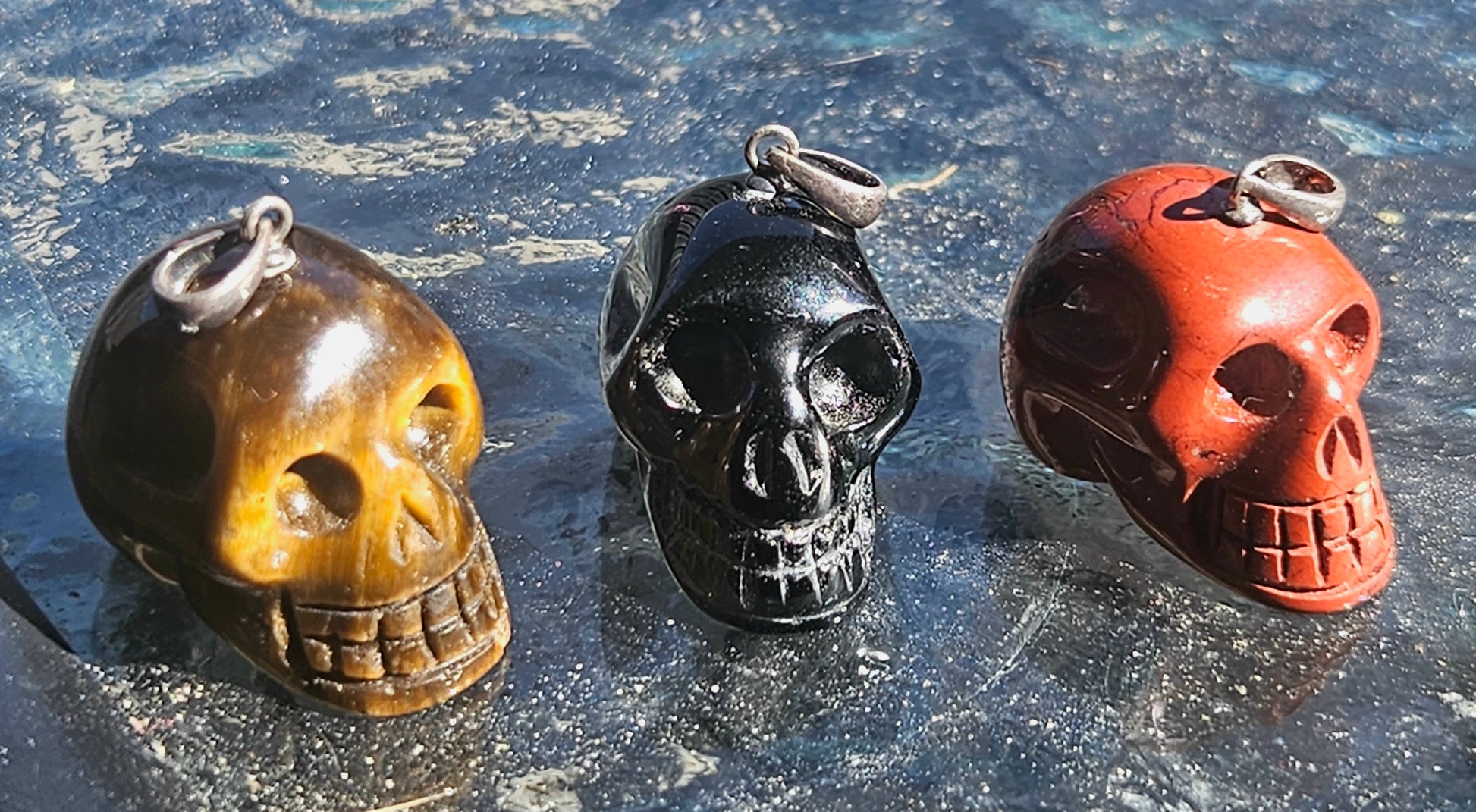 Crystal Pendants available in 3 types of crystal - Red Jasper, Tiger Eye and Black Obsidian. (Orange - Red Jasper, Gold/Yellow - Tiger Eye, Black - Black Obsidian